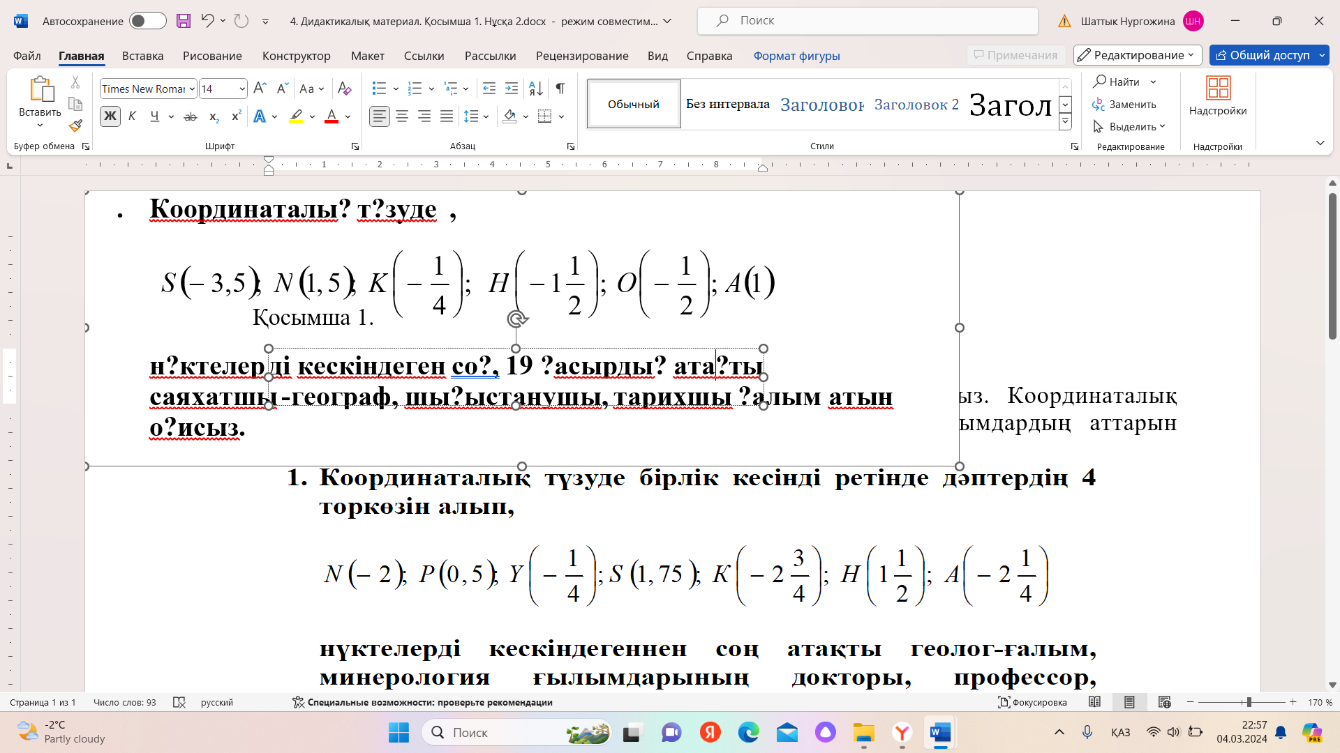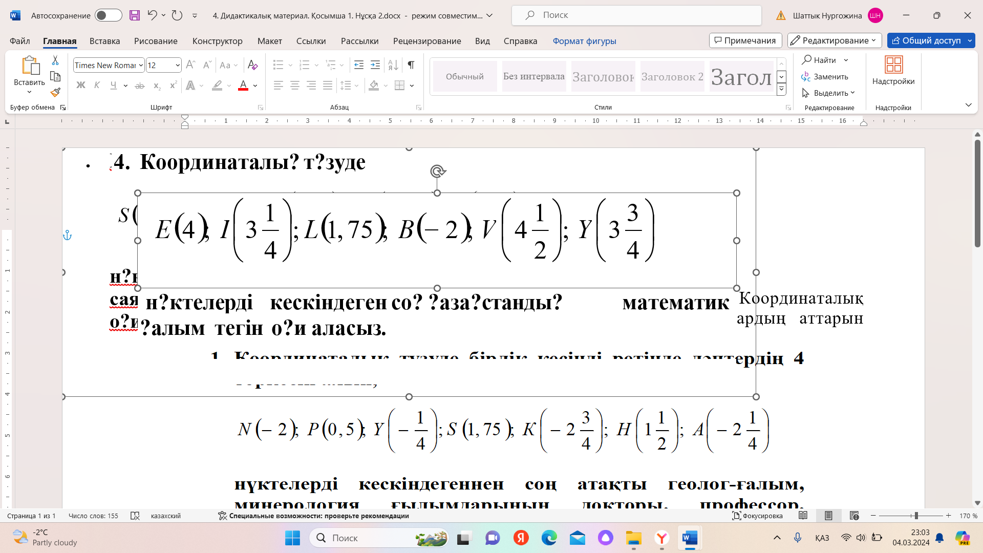 нүктелерін кескіндеген соң, Қазақстандық математик ғалымның тегін табасыңдар.