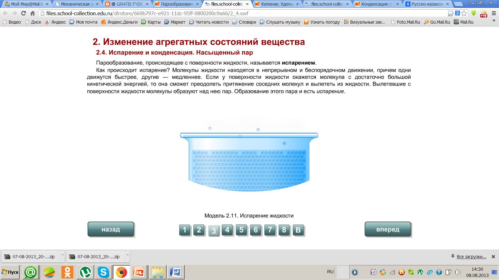 Булану және конденсация. Қаныққан және қанықпаған бу 8 сынып