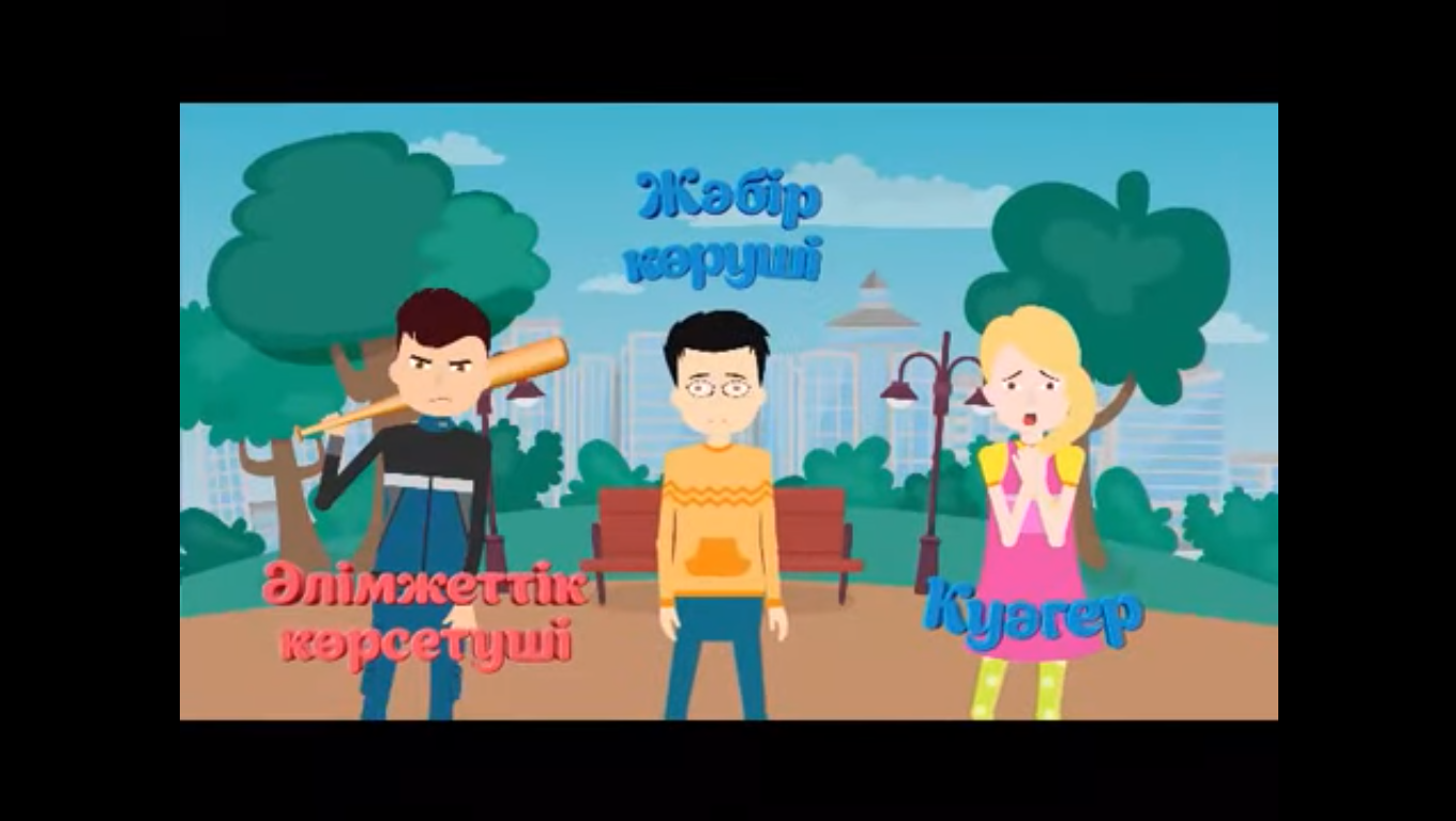 Ұйымдастыру кезеңі Оқушылар назарын сабаққа аудару. Миға шабуыл Буллинг дегеніміз не? Балалар сұраққа жауап береді, пікір алмасады. Сабақтың тақырыбымен, мақсатымен таныстыру. Миға шабуыл (бейнеролик) Мұғалім: (бейнероликтен кейінгі жетелеуші сұрақтар) Бұл бейнеролик не туралы? https://www.youtube.com/watch?v=l5OsvTnwLN4 Видео көресету. Видеодан кейінгі сұрақтар: Буллинг қандай жағдайларға әкеліп тіреуі мүмкін? Біреу сені қорқытып, қорлап жүрген жағдайда не істеу керек? Егер сен өзің біреуді қорлап жүрген болсаң ше? Неліктен адамдар бір-бірін қорлап, қиянат жасайды?