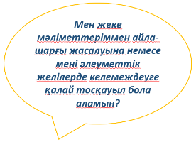1 Мен жеке мәліметтеріммен айла-шарғы жасалуына немесе мені Интернет-кеңістіктегі әлеуметтік желілерде келемеждеуге қалай тосқауыл бола аламын? Әрі бұл мүмкін бе, қалай ойлайсыңдар? |