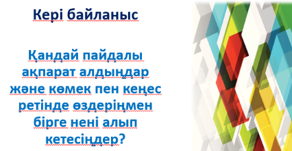 4 Жауаптарды жинап, белсенді атсалысқандарына алғыс айтамыз, артында экранға мәтінді шығарып, келесі түсіндімелерді береміз: