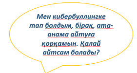 8 Балалар, егер кибербуллингке тап болып, бірақ, ата-аналарыңа айтуға қорықсаңдар, соны талқылап көрейік. Оларға кибербуллинг туралы қалай атйып бере аласыңдар? |