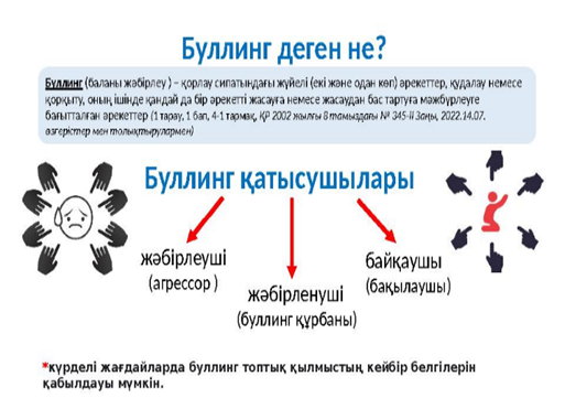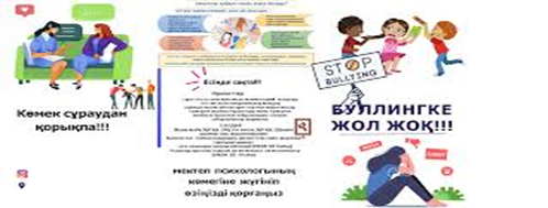 Мектепте буллинг және киббербуллингті болдырмау,болған жағдайда себептері және алдын алу жұмыстары туралы түсінік беру |