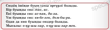 Буын ұғымымен танысасыңдар, әртүрлі буындарды талдауды, әртүрлі сөздерді буынға бөлуді, талдау үлгісін сызуды меңгересің; |