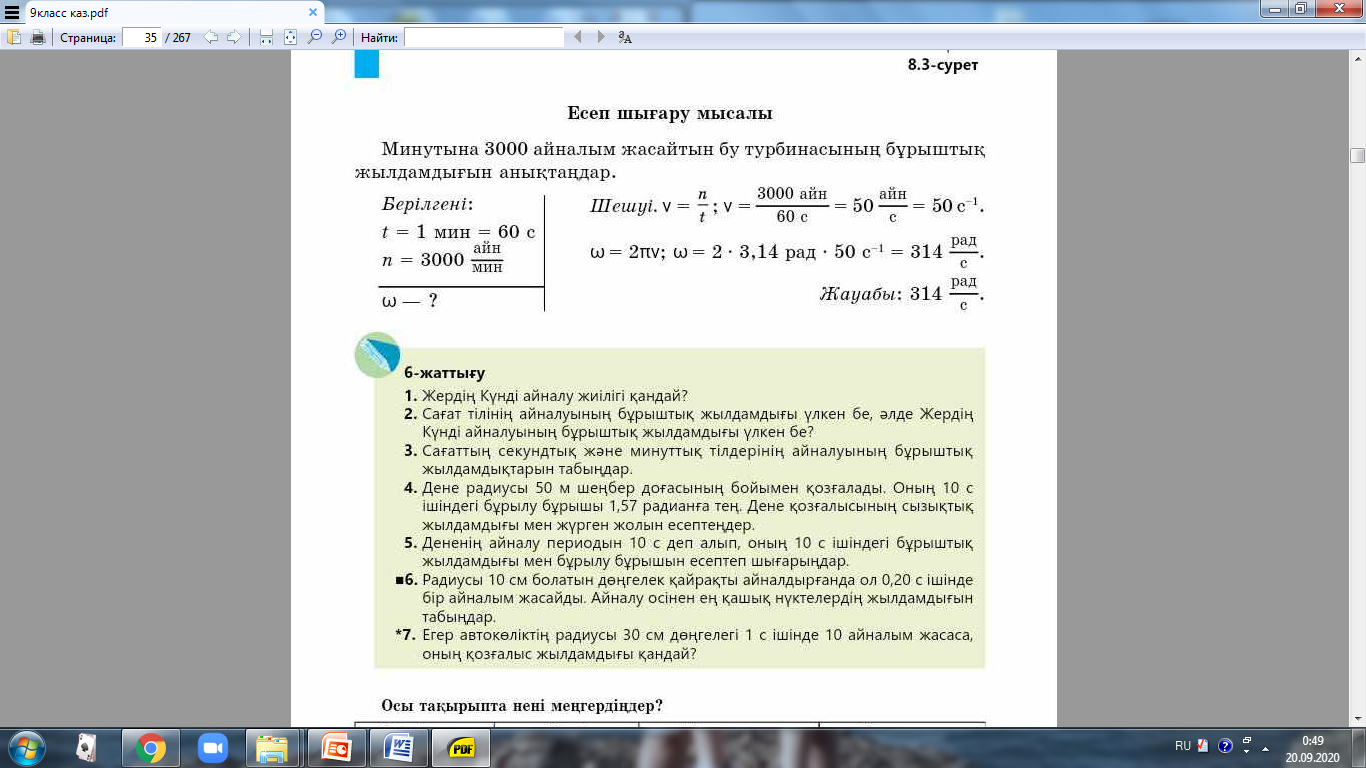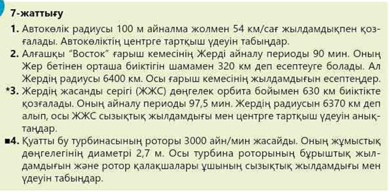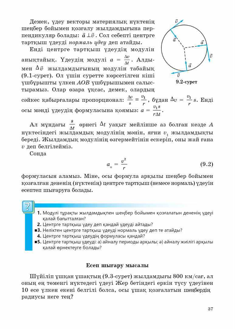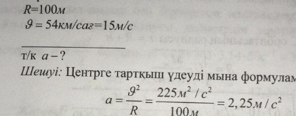 9.2.1.15 – центрге тартқыш үдеу формуласын есептер шығаруда қолдану |