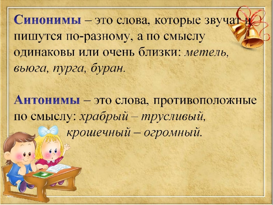 Более способные приводят дополнительные примеры данных слов, сравнивают слова антонимы и синонимы, подбирают слова без использования словарей.