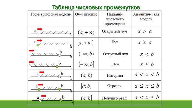 6.2.2.7 использовать обозначения для записи числовых промежутков; 6.2.2.8 изображать числовые промежутки |