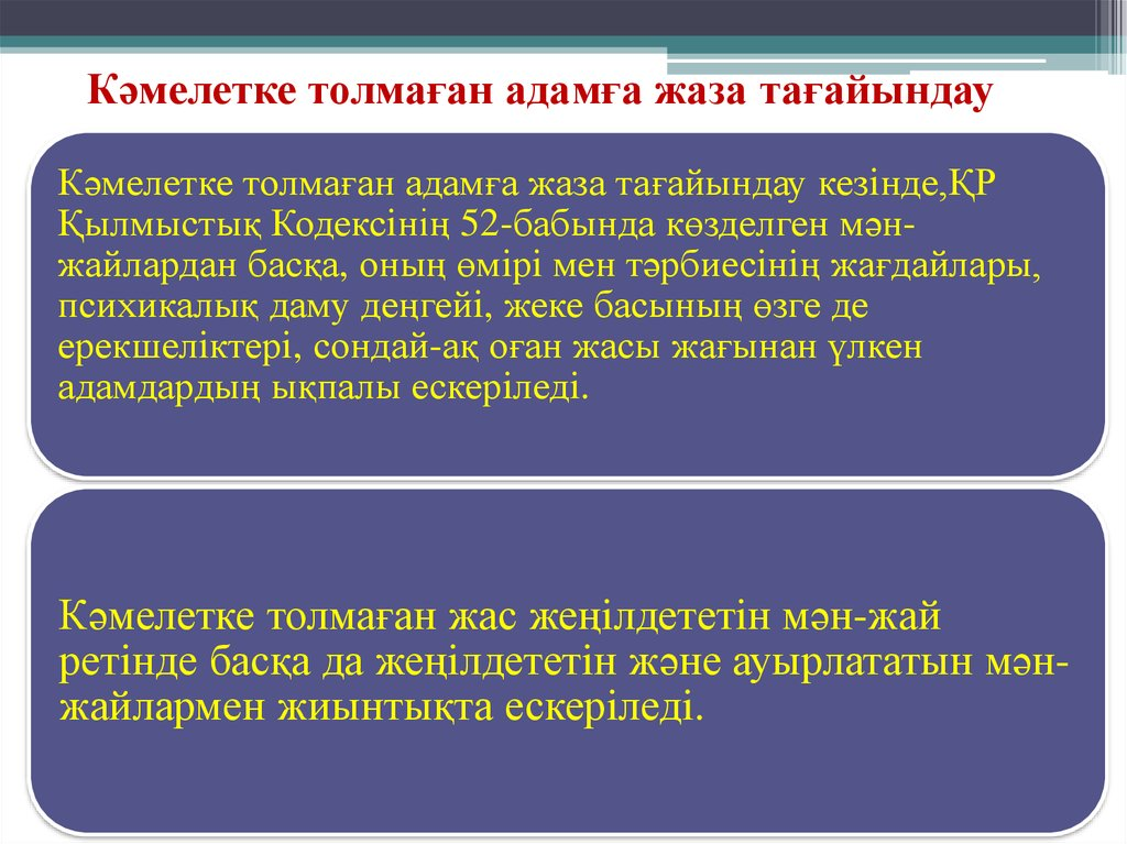 Тәртіптік жауапкершілік дегеніміз – Еңбек міндеттерін бұзу, яғни Еңбек заңнамасын бұзу, мысалы: жұмысқа кешігіп келу, себепсіз сабаққа келмеу. Азаматтық-құқықтық жауапкершілік мүліктік қатынастарды реттейді. Құқық бұзушыға жаза: зиянды өтеу, залалды төлеу. Презентация: кәмелетке толмағандар үшін құқық бұзушылық пен жаза түрлері (кәмелетке толмағандар құқық бұзушылық жасаған кезде, құқық бұзушылық субъектілері, ең алдымен, оның ата-анасы. Әкімшілік жауапкершілік 16 жастан бастап, ерекше жағдайларда (ҚР ӘҚБтК-нің 435-бабы бойынша ұсақ бұзақылық жасағаны үшін – 14 жастан басталады. Қылмыстық жауапкершілік 16 жастан, ауыр және аса ауыр түрлерді жасағаны үшін – 14 жастан басталады). Топтық талқылау: құқықтық мәселелерден қалай аулақ болуға болады (заңдарды білу, ата-аналармен қарым-қатынас жасау, ережелер мен нұсқауларды сақтау, заңсыз әрекеттерден аулақ болу, келісімдер мен рұқсаттар алу, көмек сұрау)?
