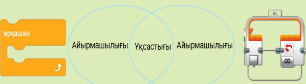 Үй тапсырмасы: Scratch пен Lego Mindstorms EV3 программасында қолданылған цикл блоктарын Венн диаграммасы бойынша салыстырып, бағала.