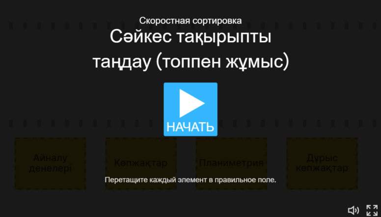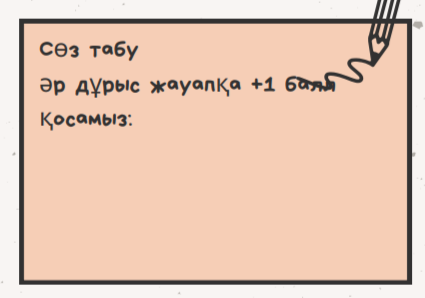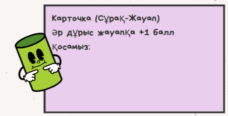 Берілген тапсырманы топпен жылдамдыққа орындайды. Әр топтың ойыншыларыкезекпен орындарын ауыстырып тұрады. Өзіңе сенімді болса, бір дұрыс жауапты басады. |