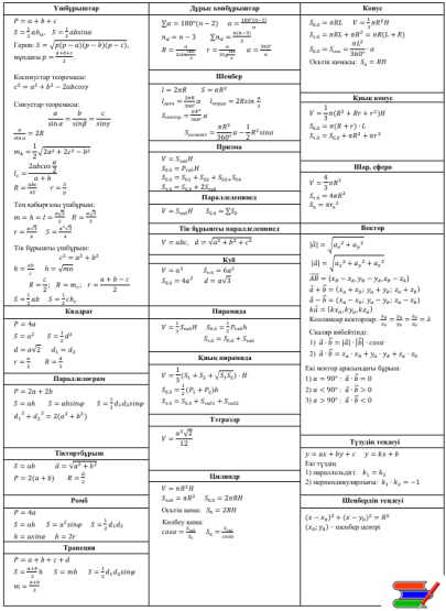 КАРТОЧКАЛАР Көпжақтарға байланысты өткен тақырыптарды қайталау (барлық формулаларымен ережелері) (6 мин) |