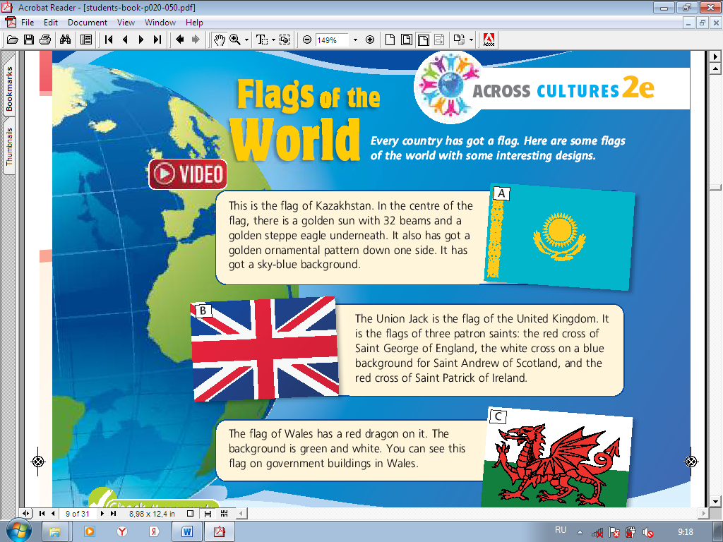 Listening and speaking Everyone know that each country has got a flag. Here are some flags of the world with some interesting designs. Listen the texts and look at the flags.
