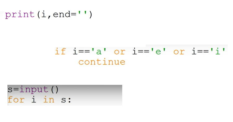 3) Ағылшынның кіші әріптерінен тұратын S жол берілген. Осы жолдан дауысты әріптерді өшіріп, дауыссыздарын экранға шығаратын программа кодын құрастыр. Ағылшын тілінде «a», «e», «i», «o», «u» және «y» алты дауысты дыбыс бар. S=input('S=') for i in S: if i=='A' or i=='a': continue print(i,end='') Дескриптор: - S жолды енгізу кодын анықтайды; - Циклдің орындалу кодын анықтайды; - Дауысты, дауыссыз дыбыстарды анықтайды; - Программа кодын тексереді. 4) Наурыз айында Қазақстанның барлық өңірлерінде ауа райы құбылмалы келеді. Көктем шығып, күн жылынса да, кей күндері ауа температурасы нөлден төмендейді. Еліміз бойынша наурыз айының А мен В (1≤А≤B≤31) күндері аралығындағы орташа ауа температурасы берілген. Сontinue-ді пайдаланып, температура нөлден жоғары болған күндердің санын анықтайтын программа құрастыр. Деректерді енгізу тігінен орындалады. Дескриптор - Орташа ауа температуралары берілген күндерді анықтайды; - Температура нөлден жоғары болған күндерді анықтайтын код жазады; - Программа кодын тексереді. 3-тапсырманы өз беттерінше орындайды. Өздеріңе таныс циклдік есептердің бірін таңдаңдар. Сontinue нұсқаулығын пайдаланып, шығару жолын ұсыныңдар Дескриптор - Сontinue нұсқаулығын қолданады.