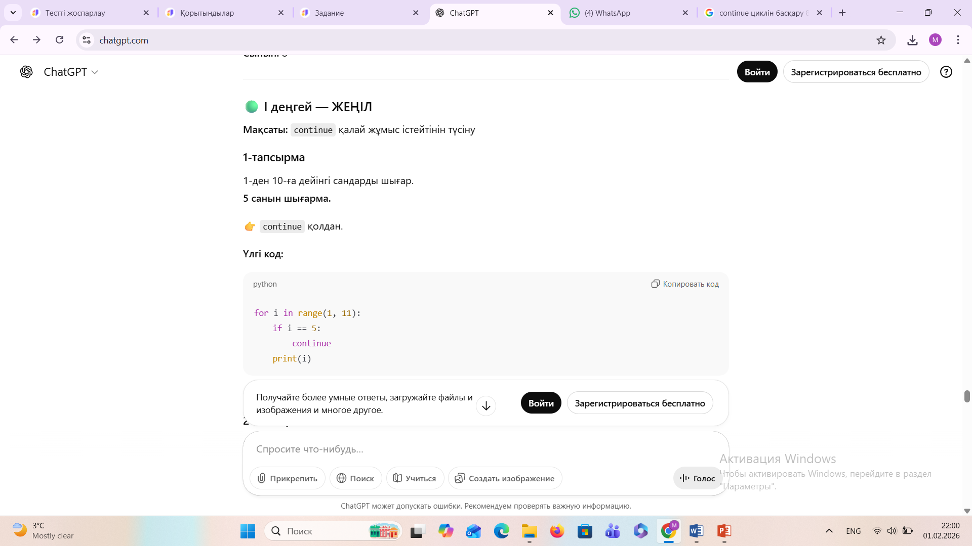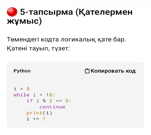 - Continue операторынның синтаксисін және құрылымын түсінеді; |