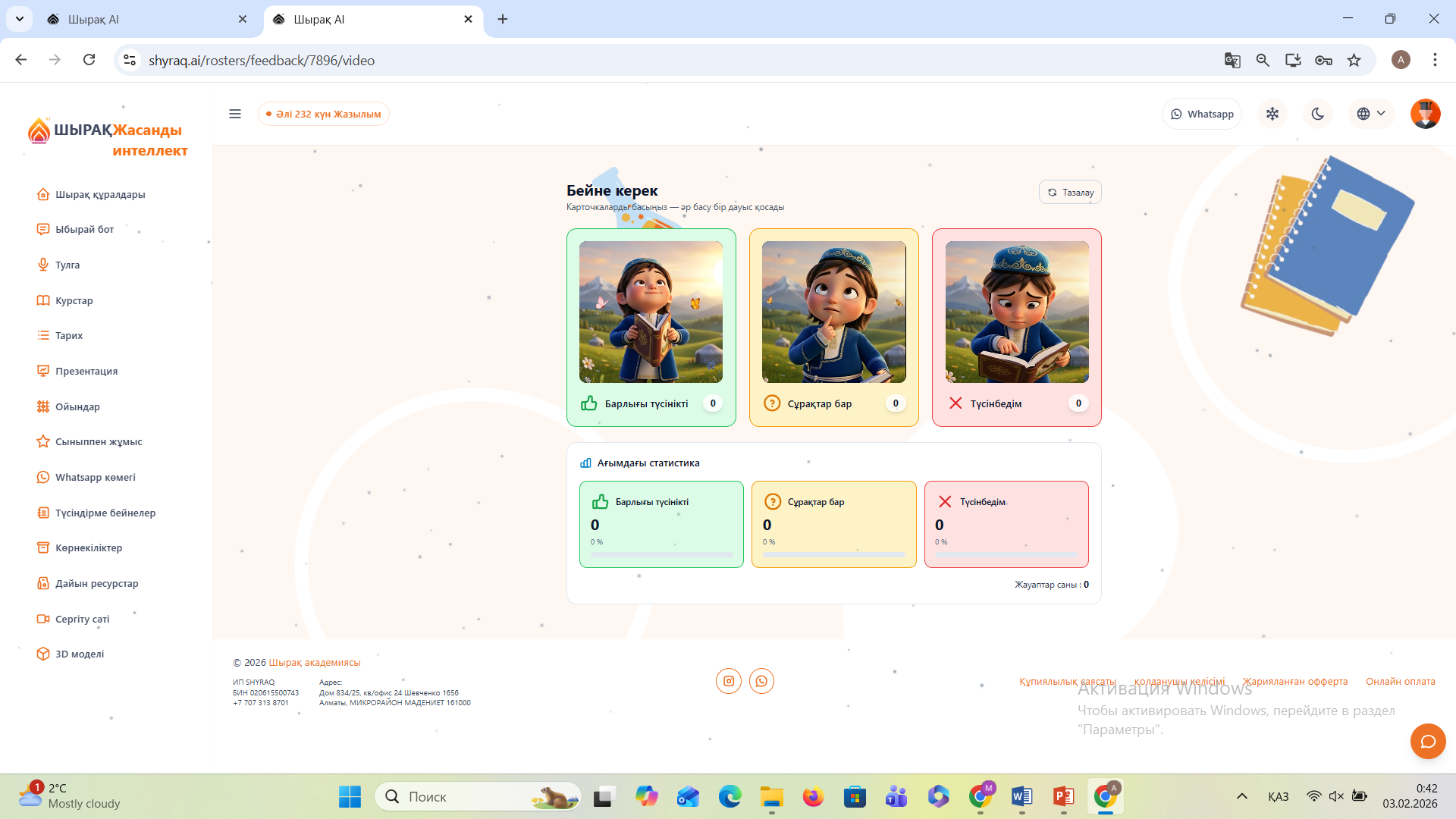 Маған барлығы түсінікті Маған сәл қиындау Мен ештеңе түсінбедім |