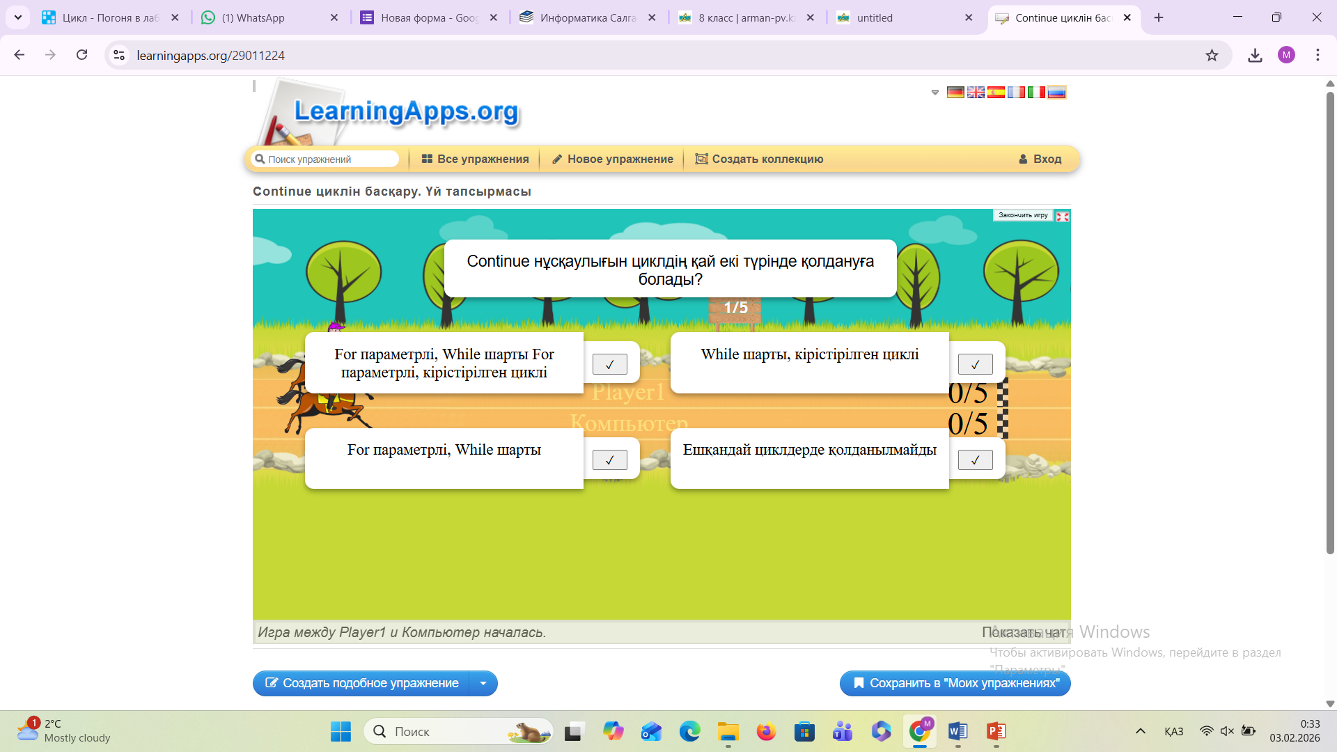 learningapps.org платформасы арқылы тұжырымдардың дұрыстығын анықтайды |