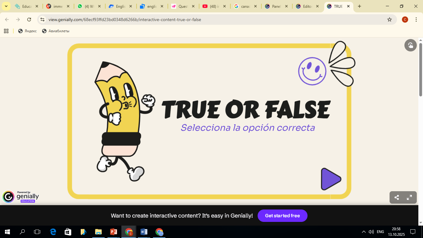 Card №1 PPT Book exercise books Book exercise books Book Exercise books Card №2 genially.com https://app.genially.com/editor/68ecf93ffd23bd0348d6266b Guizizz.com https://wayground.com/admin/quiz/68eccdc209a56345621e4ef7 |