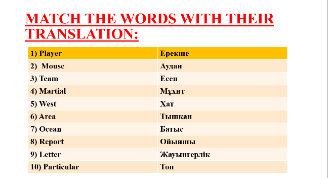 Pre-listening Individual work Teacher explains how to do the task. New words: Area [ˈe(ə)rɪə] – аудан Particular [pəˈtɪkjʊlə] – ерекше Report [rɪˈpɔːt] – есеп Ocean [əʊʃn] – мұхит