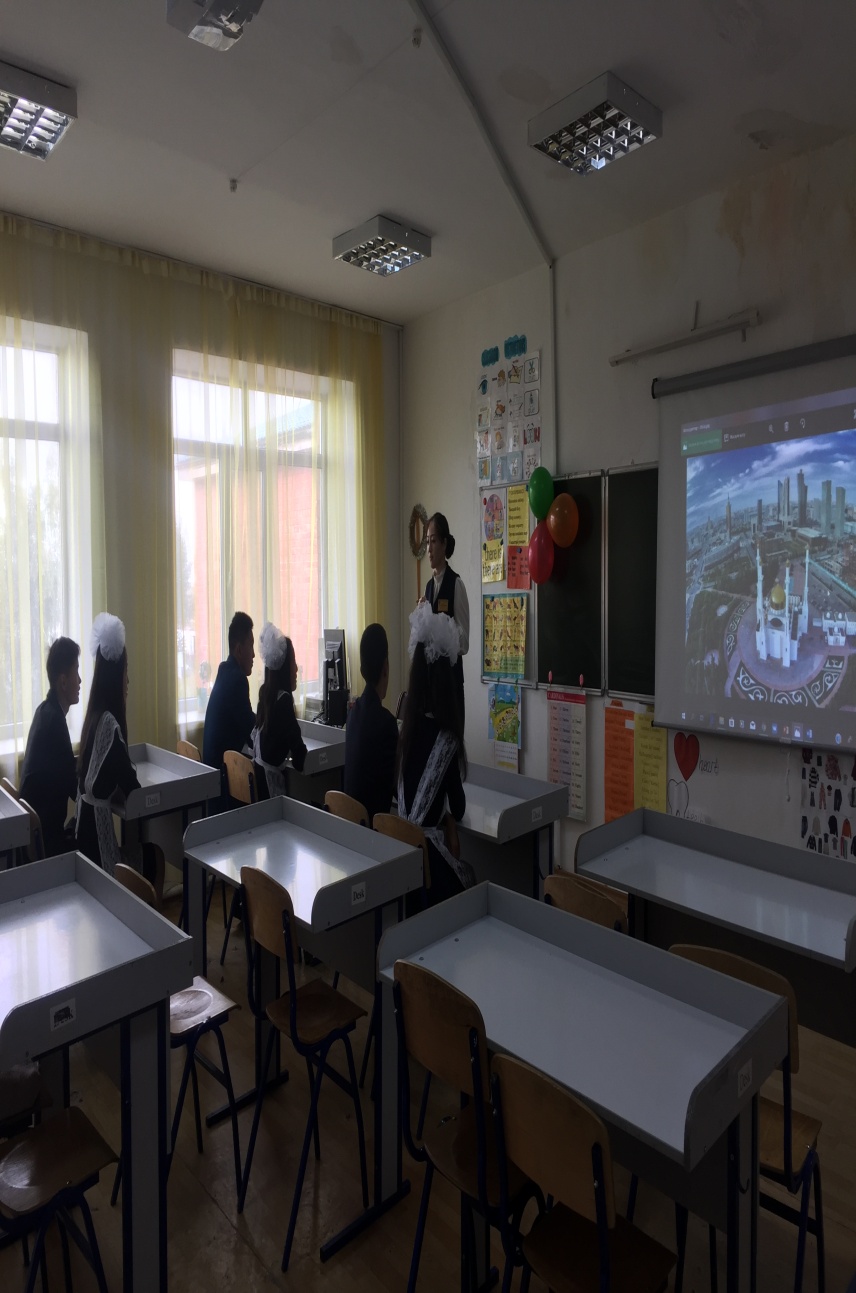 Оқушылар тақырып бойынша өз білген ақпараттарымен бөлісті. Қосымша сұрақтарға жауап берді. «Астана» туралы ән шырқалып, өлең шумақтары айтылды. Астананың көркем де әсем ғимараттарының атауларын жайында қызықты ақпараттар алды.
