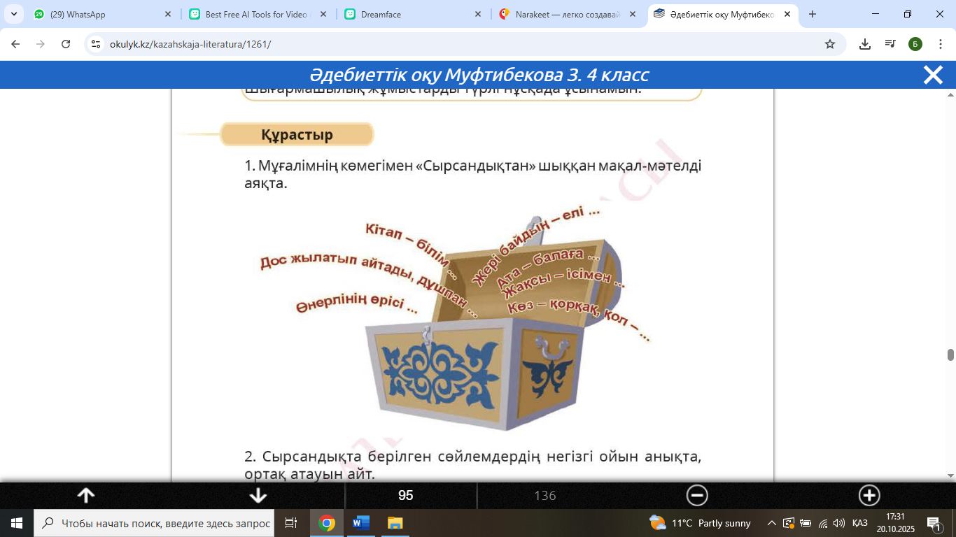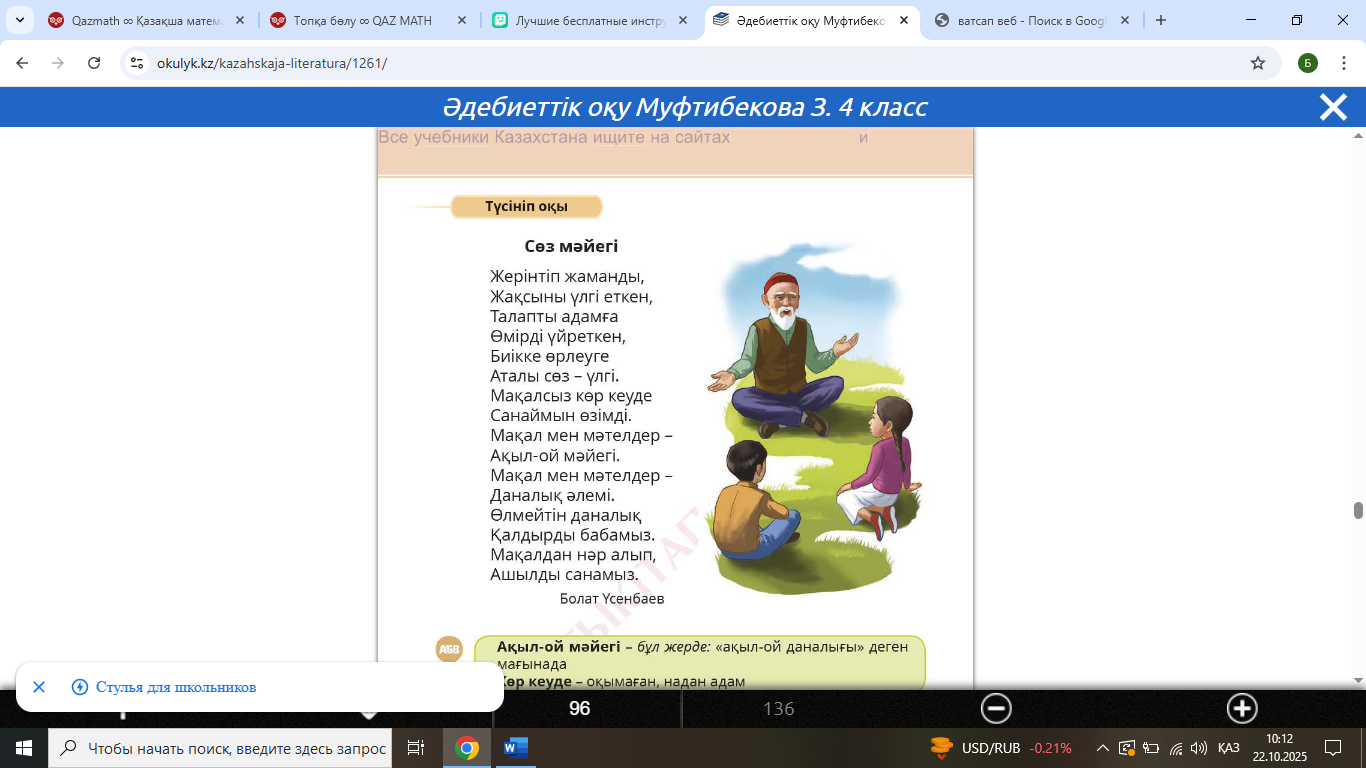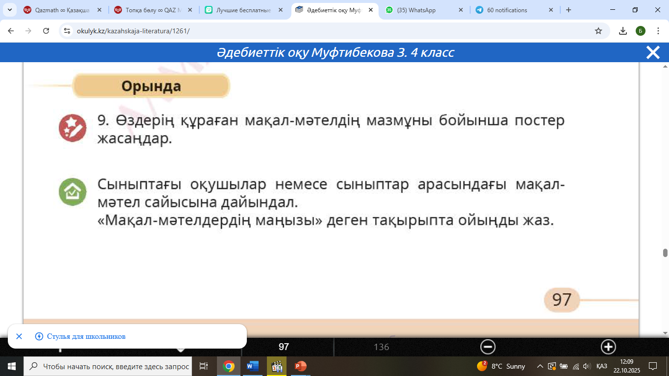 орындайды. Тапсырма «Сөз мәйегі» (авторы Б.Үсенбаев) өлеңі бойынша