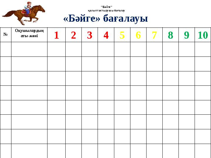 «Бәйге» әдісі арқылы бағаланады.