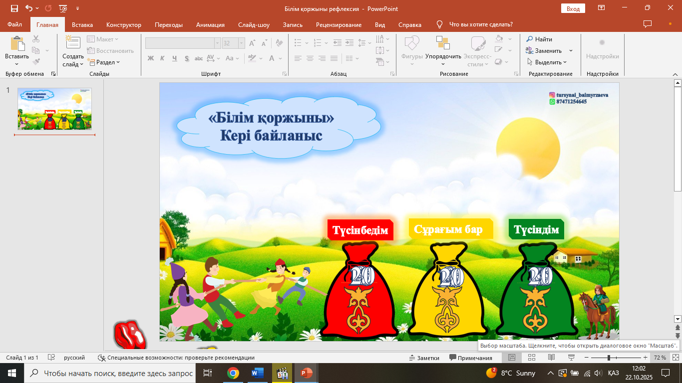 Сабақты бекіту Қорытынды бағалау Кері байланыс