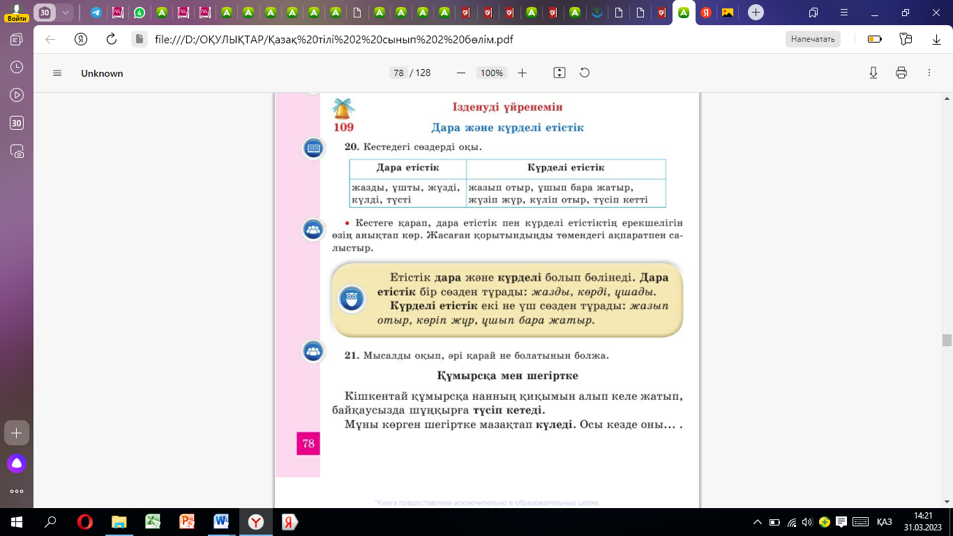 Дара және күрделі етістік 20-25 жаттығу ҚМЖ ҚАЗАҚ тілі 2 сынып
