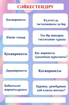 8.1.1.3 – Даражарнақты және қосжарнақты өсімдіктерді негізгі белгілеріне қарай ажырату |