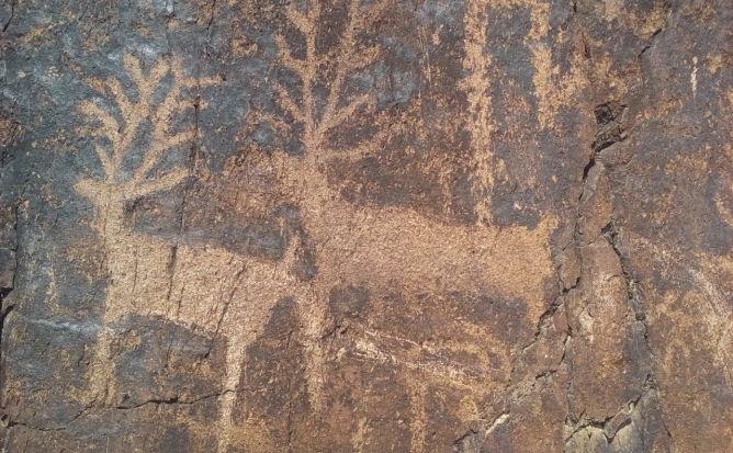 Бұғы, киік, таутеке, түйе кескіндерін тасқа қашалып салынған