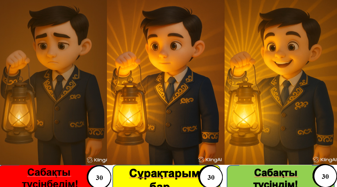 ? Жасыл: Барлығы керемет. ? Сары: Сұрақтарым бар ? Қызыл:Ештеңе түсінбедім.