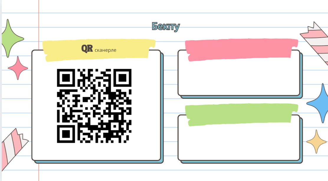 Құрмет – өз ойы мен өзгелердің пікірін тыңдау, сыйлау. Жауапкершілік – тапсырманы мұқият орындау, өз жұмысына жауап беру. Ынтымақтастық – топпен жұмыс жасау, бір-біріне көмектесу. Адалдық – есептерді өз бетінше шығару, көшірмеуге тырысу. Еңбекқорлық – тапсырманы соңына дейін орындауға ұмтылу. Сыни ойлау – берілген есепті талдау, дәлелдеп шығару. |