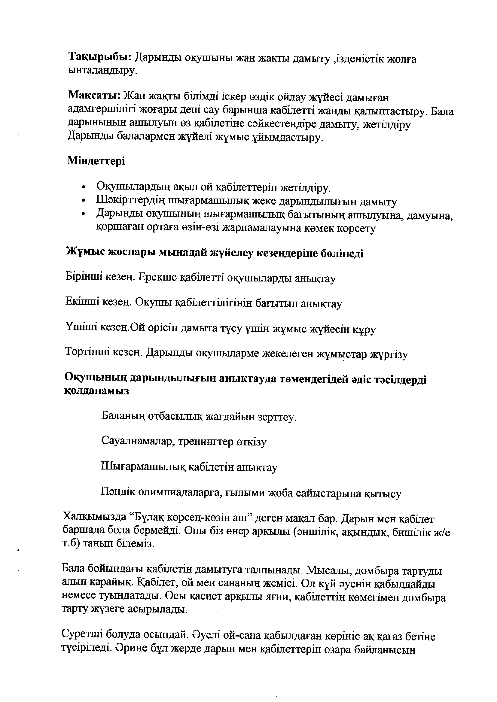 Дарынды оқушылардың қабілетін жан жақты дамыту.