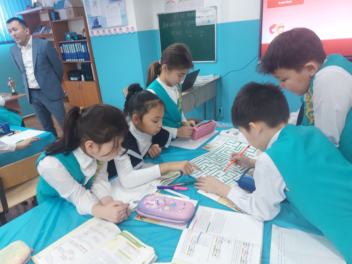 «Миға шабуыл» әдісі ЖИ те жасалған бейне бойынша Жаңа сабақтың тақырыбы анықтау « Лабиринт» деген сөзді қалай түсінесің? Көз алдыңа нені елестетесің? Сабақтың тақырыбы айқындалған соң сабақ мақсаты таныстырылады. Мұғалім түсіндірмесі .Жаңа тақырыппен таныстыру Мұғалімнің түсіндірмесі Жеке жұмыс «Тапқыр» әдісі арқылы сұрақтарға жауап береді. Дәптермен жұмыс. жаңа тақырыпта кездескен термин сөздерді өз дәптерлеріне жазып алады Топтық жұмыс «Білім кітабы» әдісі Әр топ өздеріне берілген тапсырма бойынша тапсырманы орындайды 1-топ