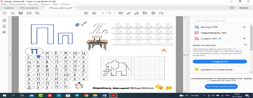 1 тапсырма. Б мен П әріптерінің жазылуымен танысу, әріптерді бастырып жазу.