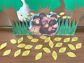 жабыстыр 1 – тапсырма. «Күзгі жапырақтар». Ауа ағымын дамытуға арналған. - Қараңдаршы балалар, орманды жапырақтар басып кетіпті. Кірпіге көмектесейік (жапырақтарды үрлеу).