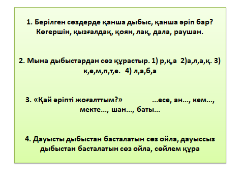 № 7 сабақ. Дауысты және дауыссыз дыбыстар |