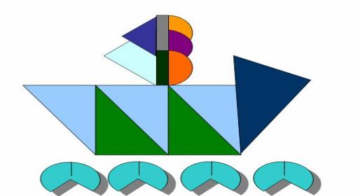 пожалуйста, части, а от зелёного круга, части. Что вы заметили? (делили на разные части, а отложили