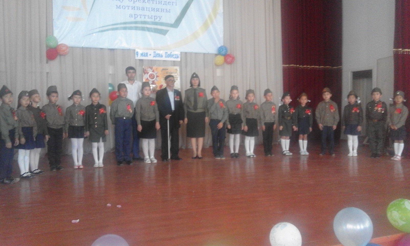 Учитель: Празднуя 9 мая День Победы, мы благодарим героическое поколение ветеранов войны за Победу, стойкость и мужество, за сохранение мира для будущих поколений, за независимость Родины.