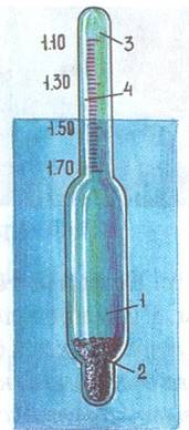 Ареометрлер-сұйықтың тығызығын анықтауға арналған құрал. Құрылысы: 1