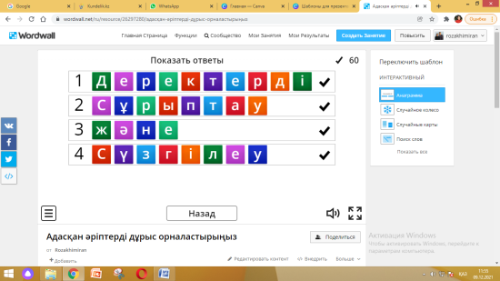 learnis.ru Платформасында квест ойыны арқылы бөлмеде жасырылған сұрақтарды тауып, жауап береді. (Жекежұмыс)