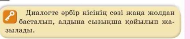 Мәтінді оқып, диалог екенін дәлелдейді. Мәтін мазмұны бойынша берілген сұрақтарға жауап береді. Диалогті оқи отырып, мазмұнын