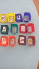 Ойын барысы: Педагог столға жасалған дидактикалық ойынды қояды, шыны бакал мен шайнектің қасына түсі бойынша тарелкелерді қойып шығады. Бала осы ған сәйкес түсті іздеп, шыны тарелкені қояды.