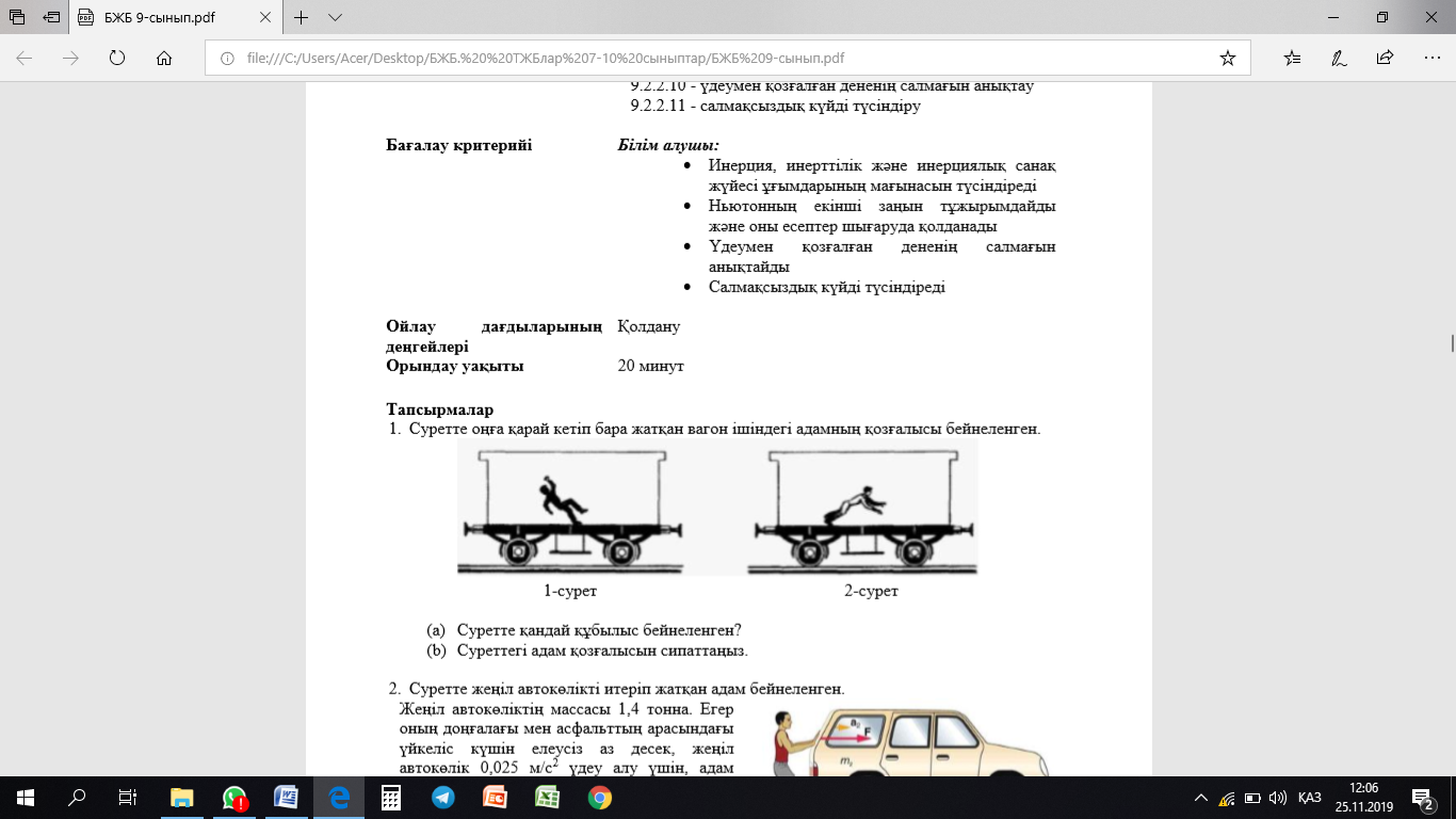 «Динамика негіздері» бөлімі бойынша жиынтық бағалау 9 сынып