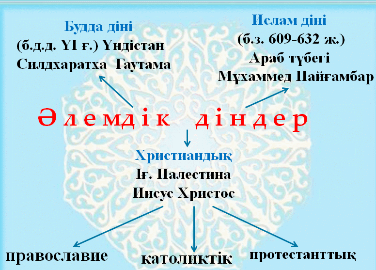Оқушылар сыни тұрғыдан ойлау арқылы дін түрлері және олардың ерекшеліктері туралы мәліметтер алады. |