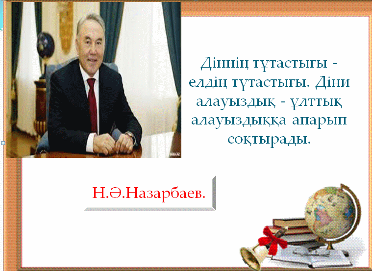 Діни қызымет пен діни бірлестіктер туралы терең мағлұмат беру, оқушылардың білімдерін қалыптастыру |