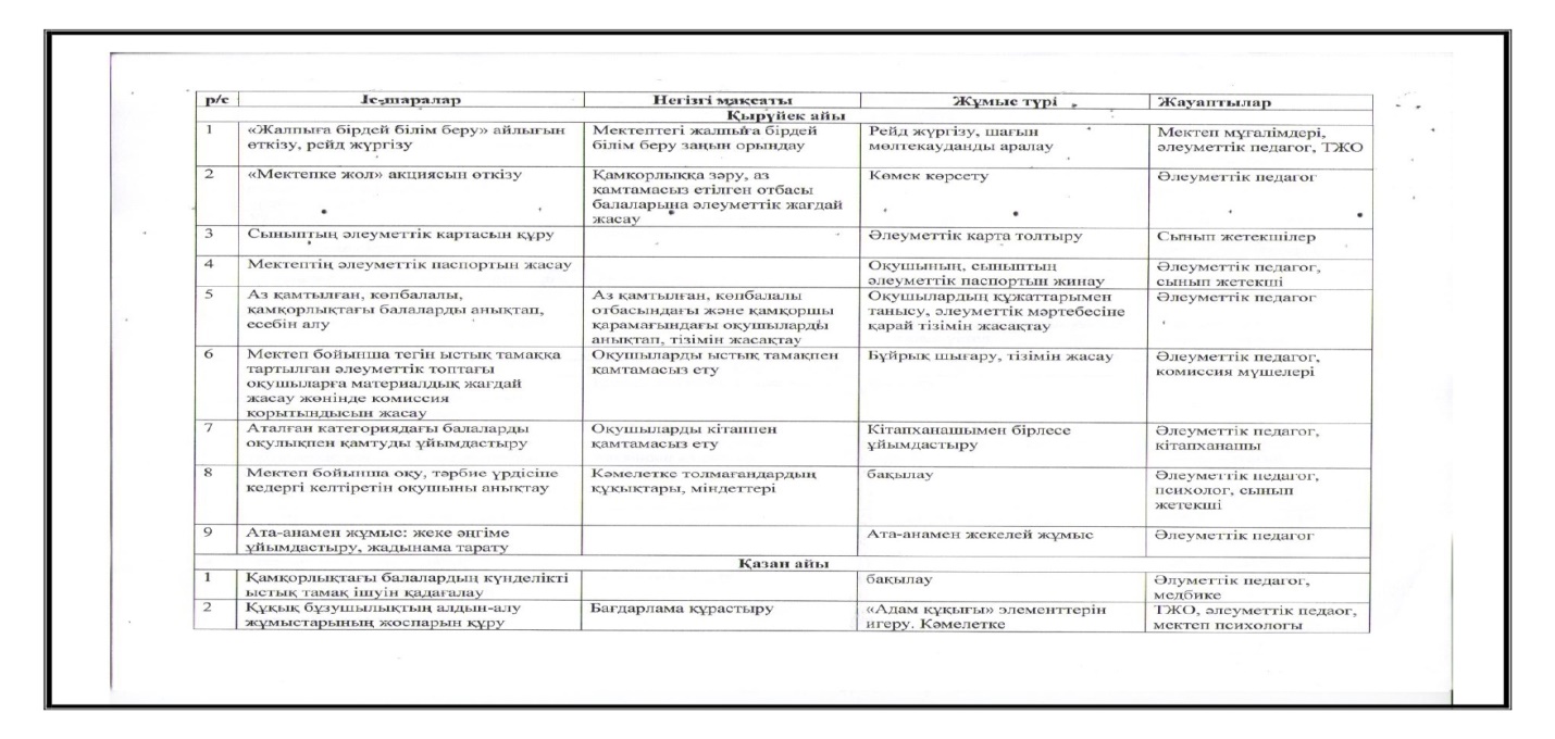 Қолайсыз отбасымен жүргізілетін жұмыс жоспары.