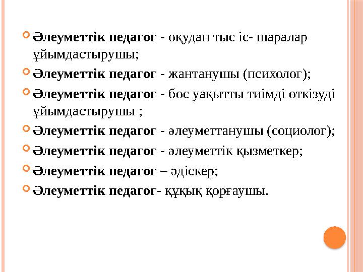 Әлеуметтіук педагог жан –жақты , ізденімпаз болса ғана .жеке балаға тиімді көмек көрсете алады.