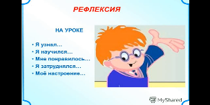Вспомните ,чему мы научились на этом уроке, что для вас было сложным ,легким в исполнении Рефлексия