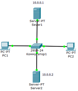 Задайте в конфигурации серверов настройки IP: Server1 – 10.0.0.1 ( рис. 6.7), Server2 – 10.0.0.2 ( рис. 6.8). Маска подсети установится автоматически как 255.0.0.0.