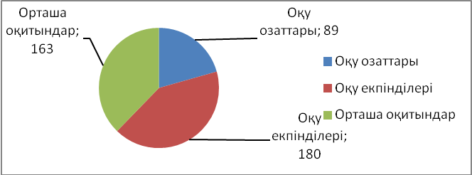 Үржар ауданы Науалы ауылындағы Қойшыбай Төлеубеков атындағы орта мектебінің 2-тоқсан қорытындысы бойынша оқушылардың оқу озаттары – 89, оқу екпінділері – 180, орташа оқитындар – 163, тоқсан бойынша диаграмма құру (3-сурет).